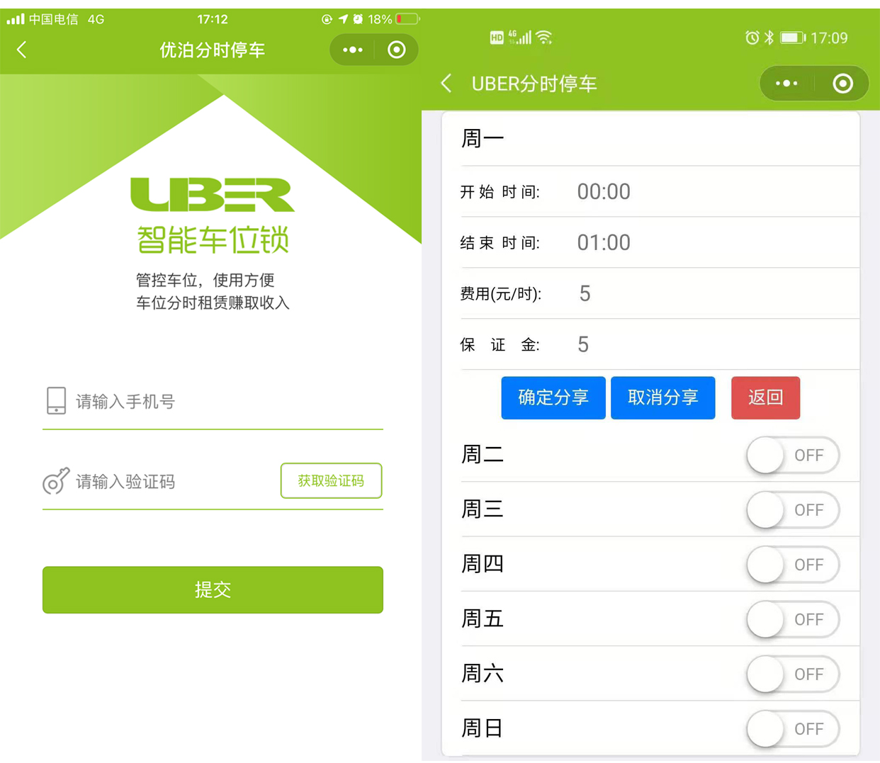 使用產品:NB-IoT智能車位鎖+“優泊分時共享停車”小程序(公司研發軟件產品)